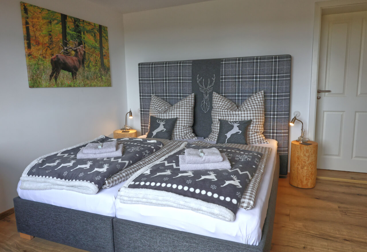 In unserem Ferienhaus legen wir größten Wert auf erstklassige Schlafqualität – denn guter Schlaf ist die Basis für einen gelungenen Urlaub im Thüringer Wald. Dich erwarten liebevoll eingerichtete Schlafzimmer mit hochwertigen Betten, die für Ruhe, Komfort und Entspannung sorgen.